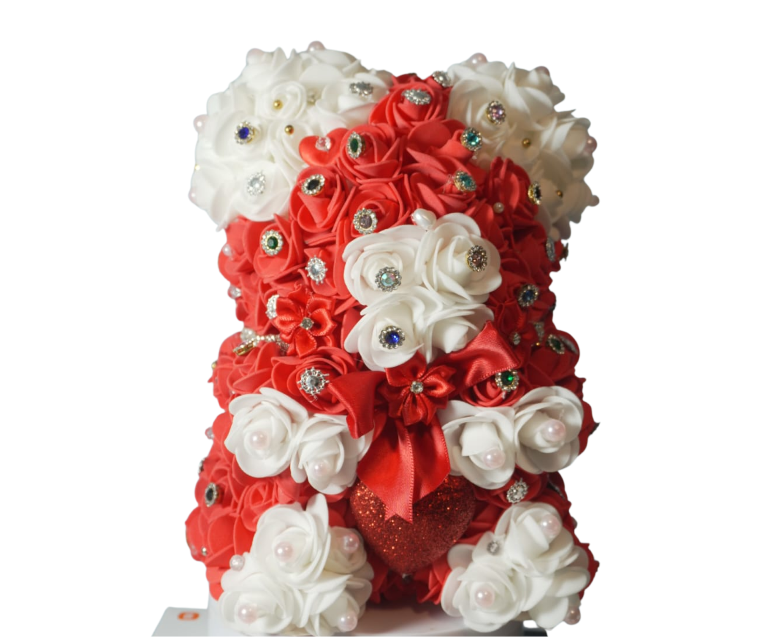 + Free ShippingGlamorous Rose Bear made from red roses, pearls, and rhinestones. Perfect for Valentine’s Day. Limited offer at SCR 400/-.